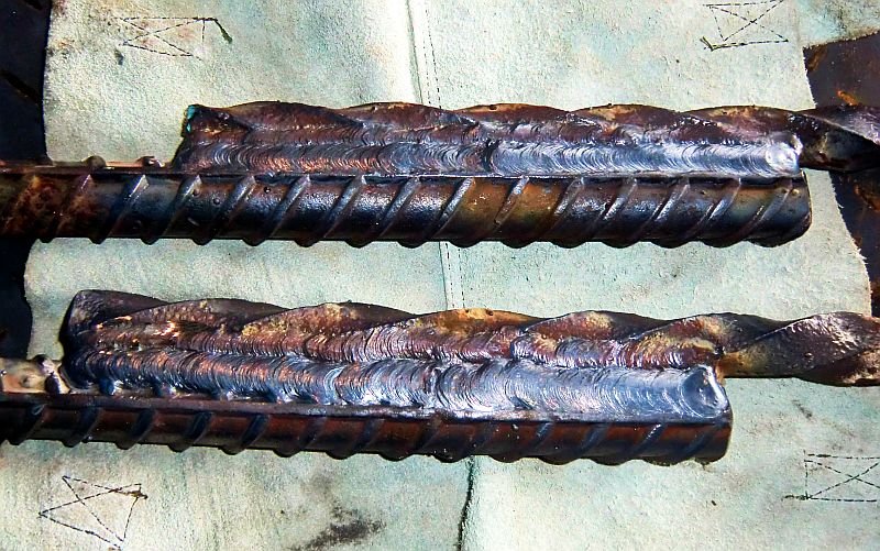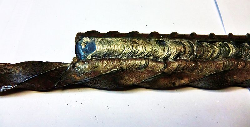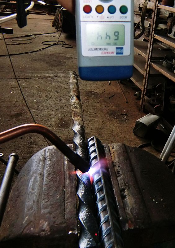 Ambas barras soldadas, listas para llevarlas a la prensa de tensión.