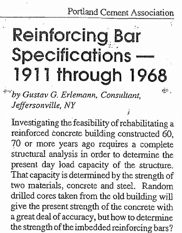 El artículo describía en detalle el tipo de barra – Barras Cuadradas Entorchadas (Cold Twisted Square Bars) designadas en 1911 con el número de especificación ASTM A15.